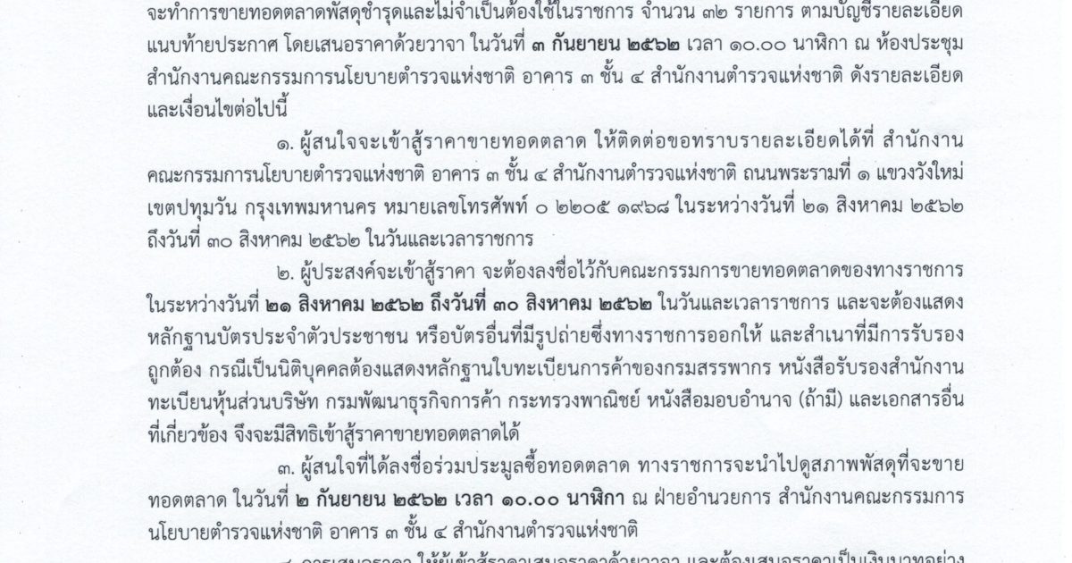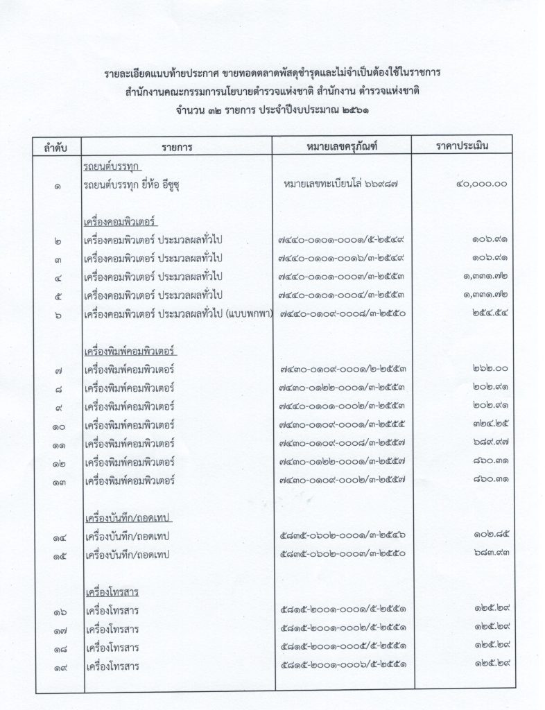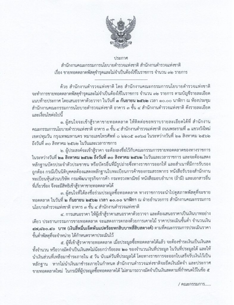 ประกาศฯขายทอดตลาดพัสดุชำรุดและไม่จำเป็นต้องใช้ในราชการ 32 รายการ