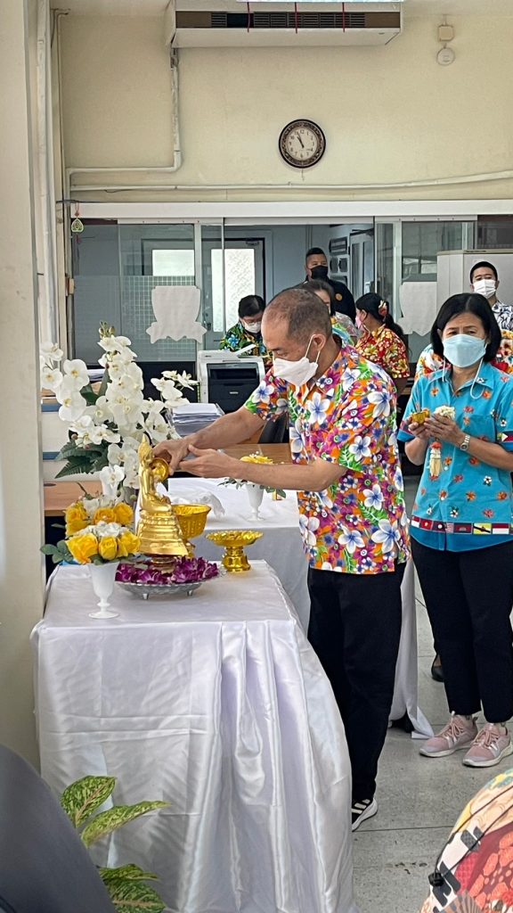 วันที่ 11 เมษายน 2566 เนื่องในโอกาสเทศกาลวันสงกรานต์ (ปีใหม่ไทย) สำนักงานคณะกรรมการนโยบายตำรวจแห่งชาติ (สง.ก.ต.ช.) จัดกิจกรรมสรงน้ำพระและรดน้ำขอพรจากผู้บังคับบัญชา พลตำรวจตรี สุนทร อรุณนารา ผู้บังคับการสำนักงานคณะกรรมการนโยบายตำรวจแห่งชาติ นำโดยพันตำรวจเอก ธวัชชัย จันทร์จรุง รองผู้บังคับการสำนักงานคณะกรรมการนโยบายตำรวจแห่งชาติ และข้าราชการในสังกัดสำนักงานคณะกรรมการนโยบายตำรวจแห่งชาติ ร่วมรดน้ำขอพรจากผู้บังคับการ ณ สำนักงานคณะกรรมการนโยบายตำรวจแห่งชาติ ชั้น 4 อาคาร 3 สำนักงานตำรวจแห่งชาติ