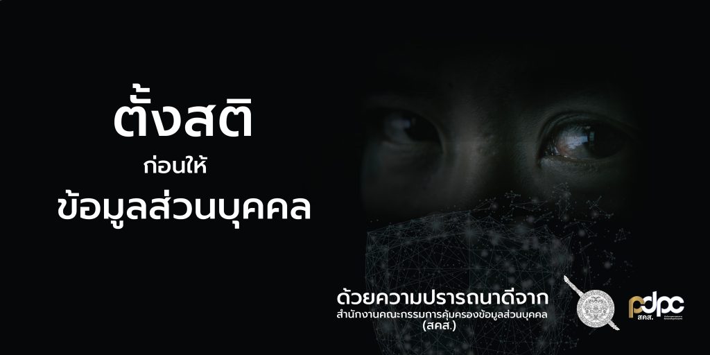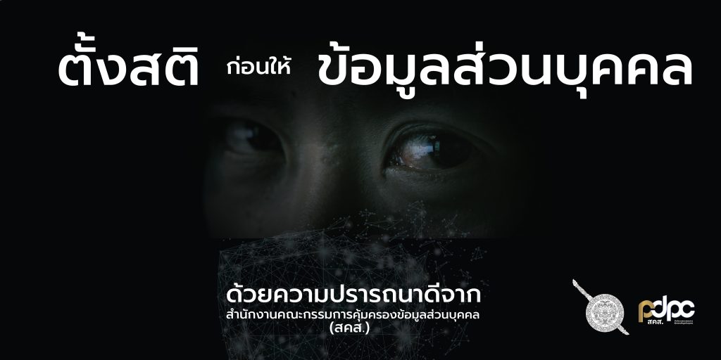 ๑. สื่อสิ่งพิมพ์ ๒ แบบ ปรากฏข้อความ “ตั้งสติ ก่อนให้ข้อมูลส่วนบุคคล”